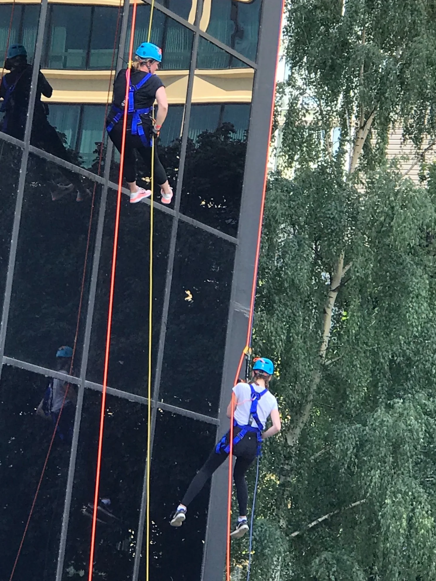 My daughter and I rappelling for Girls Inc. She’s the one not in fear for her life!